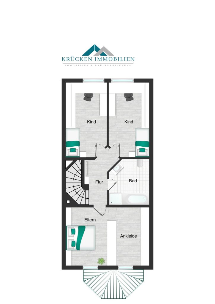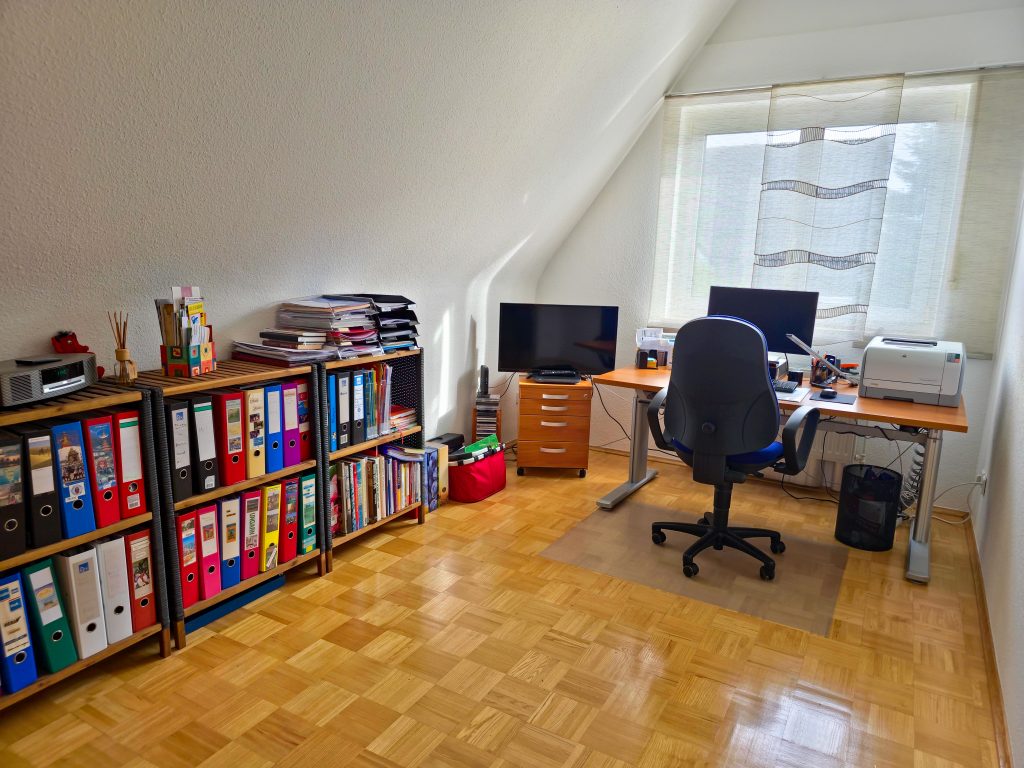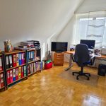 Im Obergeschoss befinden sich das großzügige Schlafzimmer sowie zwei weitere Zimmer, die sich ideal als Kinder-, Gäste- oder Arbeitszimmer eignen. Das Tageslichtbad mit Badewanne und Dusche präsentiert sich ebenfalls gepflegt und zeitlos.