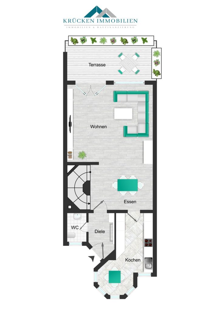 Bereits beim Betreten des Hauses fällt der freundliche und gepflegte Gesamteindruck auf. Der helle Eingangsbereich führt in den großzügigen Wohn- und Essbereich, der durch große Fensterflächen lichtdurchflutet ist und einen direkten Zugang zur überdachten Terrasse mit Garten bietet. Der Außenbereich ist pflegeleicht angelegt und lädt zum Entspannen oder geselligem Beisammensein ein.