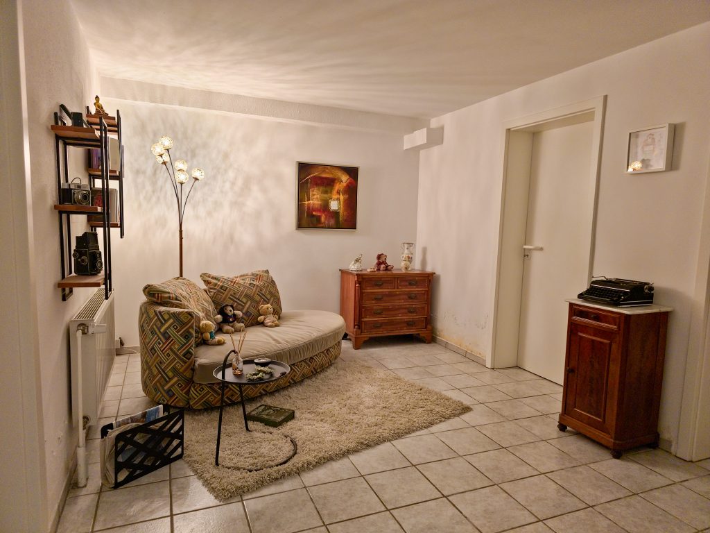 Der vollunterkellerte Bereich bietet mit einer Deckenhöhe von ca. 2,35m viel Platz für Hobby, Hauswirtschaft und Stauraum. Die Räume sind hell gefliest und teilweise wohnlich gestaltet – eine ideale Erweiterung der Nutzfläche.