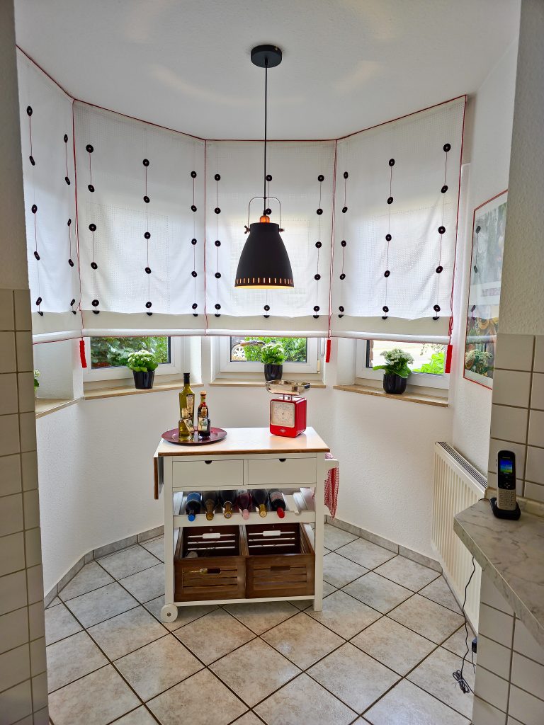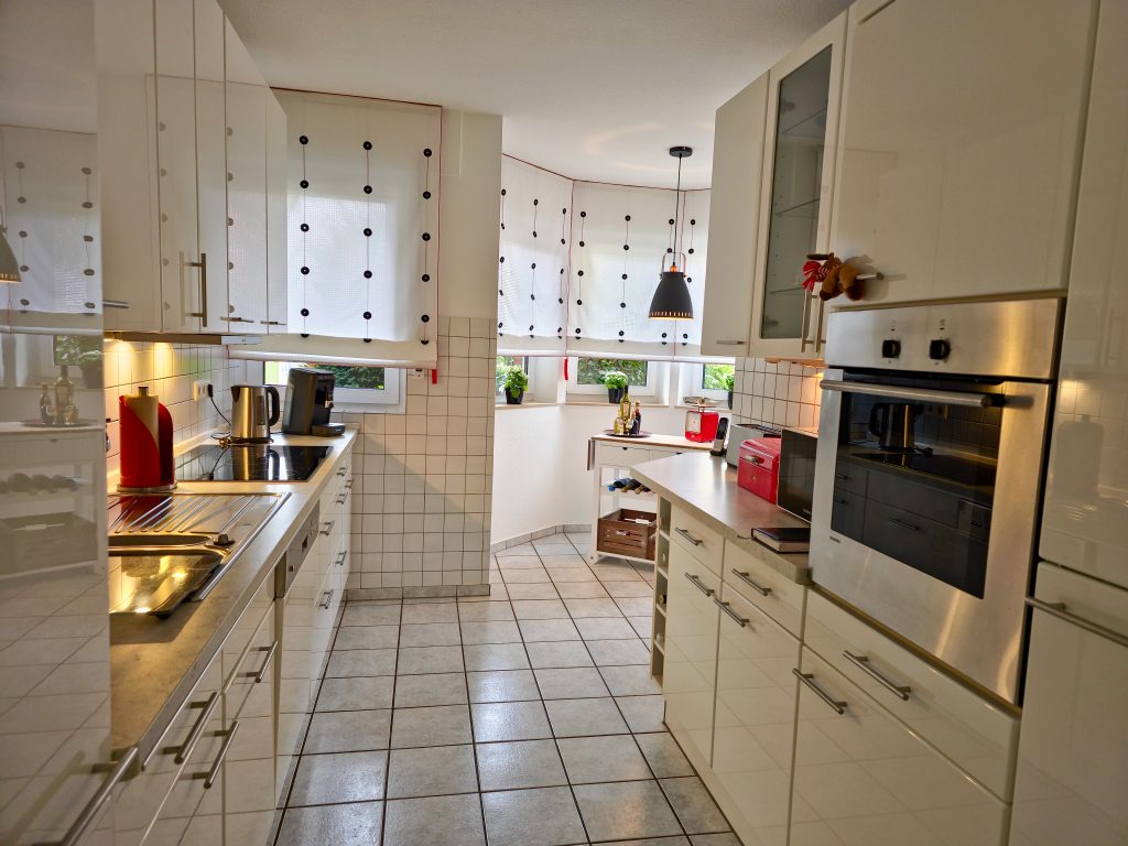 Die Küche besticht durch ihren hellen, freundlichen Schnitt und den gemütlichen Erker, der sich ideal als Frühstücksplatz eignet. Die auf den Fotos gezeigte Einbauküche ist nicht Bestandteil des Kaufangebots, vermittelt aber gut, wie der Raum optimal genutzt werden kann.