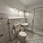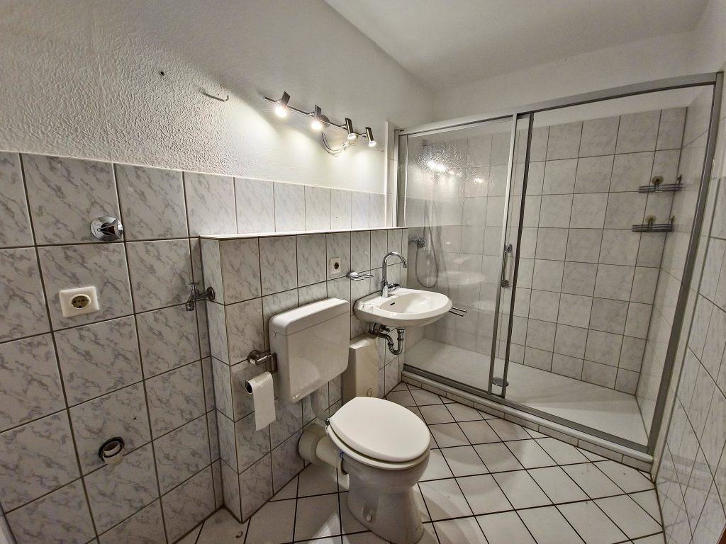 Das Bad überzeugt mit einer fast ebenerdigen, großzügigen Dusche sowie einem Waschmaschinenanschluss.