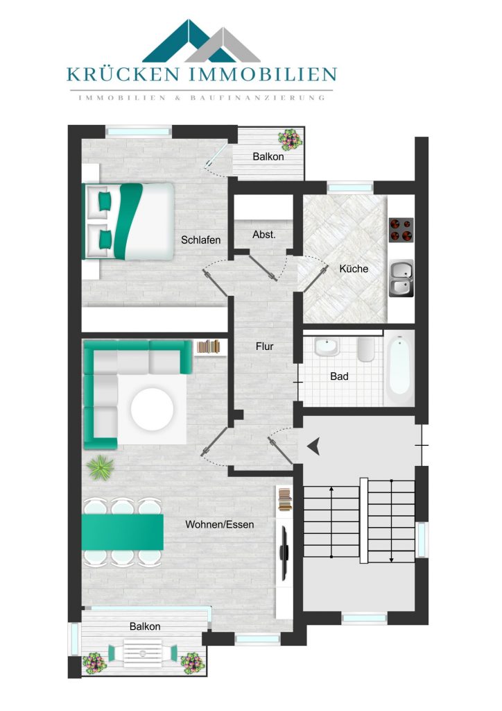 - ein größerer Balkon mit Abstellkammer am Wohnzimmer